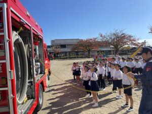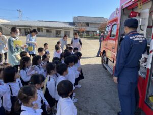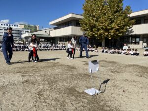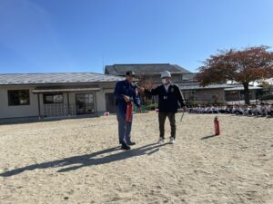消火器を使っての訓練もさせていただき、最後にはかっこ