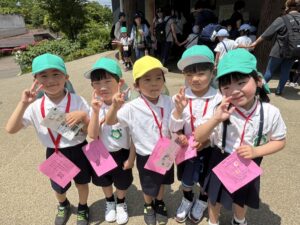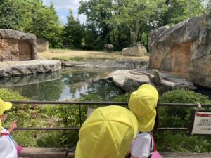 今日はさくら幼稚園で遠足に行きました。心配していた天気も子どもたちの笑顔でとてもいい天気になりました。園内では、ポイントを探してシールをもらうスタンプラリーも行って、ニコニコの子供達。お目当ての動物を見つけると、大興奮のみんなでした。