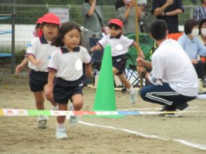 様々ですが、年長組のリレーを見ていると