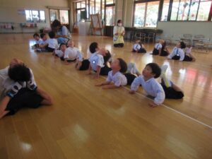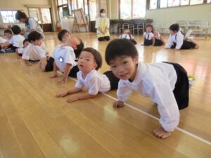 <年中少組は年長組の組み立て体操>