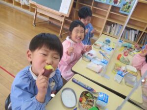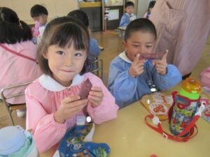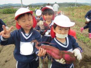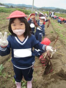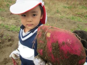 幼稚園では、焼き芋と